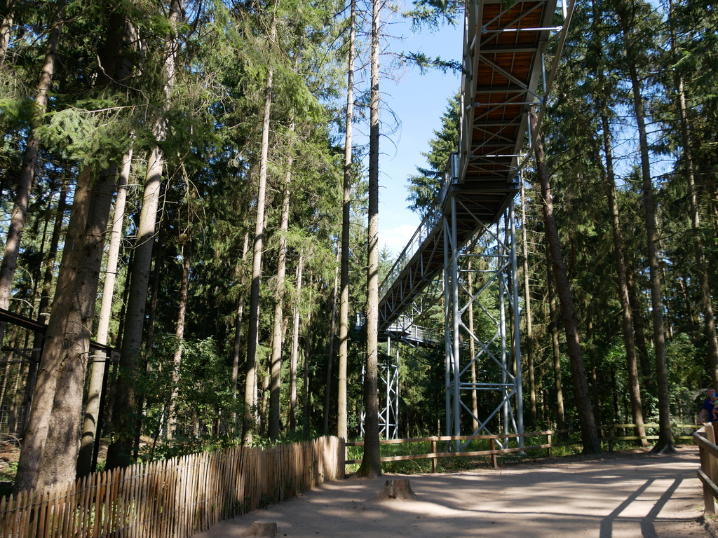 Was ich vom Baumwipfelpfad „Heide-Himmel“ halten soll, der im vergangenen Jahr eröffnet wurde, weiß ich noch nicht. Ich stelle es mir schon irgendwie faszinierend vor, über den Baumwipfeln hinweg zu gehen. Die Stützpfeiler im Wildpark empfinde ich jedoch optisch eher als störend. Hunde sind dort nicht erlaubt, daher kommt es für uns heute sowieso nicht in Frage. Obwohl ich das Angebot, für 3,50 Euro ein „Hunde-Appartement“ zu mieten, eine gute Idee finde. Der Besuch des Baumwipfelpfades kostet eine zusätzliche Gebühr, Du kannst ihn auch separat besuchen, wenn Du nicht in den Wildpark möchtest.