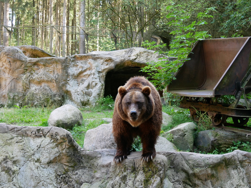 Nun nähern wir uns den Wildkatzen – allzu nah kommt man jedoch nicht an sie heran. Bei einigen Tierarten wie beispielsweise den Wölfen ist es ausdrücklich verboten, sich mit Hunden zu sehr zu nähern. Bei den Braunbären steht das zwar nicht geschrieben – aber Piet veranstaltet einen solchen Aufstand, dass Matthias gleich mit ihm das Weite sucht, während ich versuche, ein paar Fotos zu machen. Die Viecher sind aber auch beeindruckend!