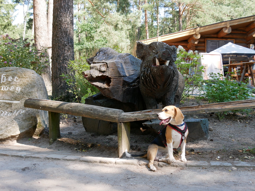 Der Wildpark Lüneburger Heide liegt nur eine gute halbe Autostunde von Lüneburg entfernt – wie der Name sagt – in der Lüneburger Heide. Das Mitnehmen von Hunden ist dort erlaubt – an der Leine selbstverständlich. Also warum es nicht einmal ausprobieren? Wer sagt, dass man an seinem Geburtstag nicht auch mal eine kleine Lehrstunde haben darf? Aufgrund der vorhergesagten Temperaturen von mehr als 30 Grad zweifeln wir noch kurz, entscheiden uns aber schließlich, unseren Plan durchzuziehen. Und das war eine gute Entscheidung.