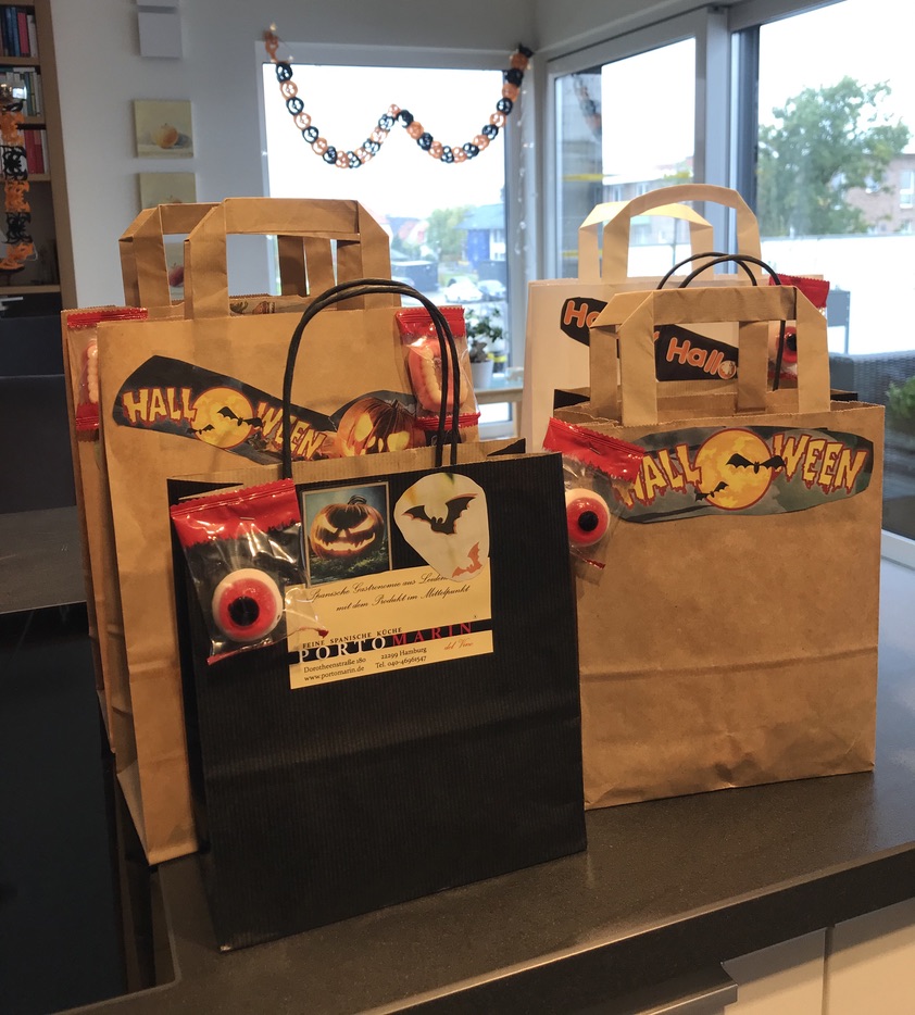 Was also tun? Vor uns liegt der November, der ja sowieso schon nicht als großer Stimmungsmacher bekannt ist. Morgen ist Halloween. In der WhatsApp-Gruppe unseres Wohnviertels wurde der Beitrag aus der Landeszeitung geteilt, in dem aufgerufen wurde, auf Halloween-Touren zu verzichten. Daraufhin entbrannte – wie ja so gerne in solchen Gruppen – eine heftige Diskussion, die dann zum Glück durch die Moderatorin gestoppt wurde. Ich hatte bereits vorsorglich eingekauft und bin nun wild entschlossen, die Süßigkeiten unter das Volk von kleinen Geistern und sonstigen gruselig verkleideten Kindern zu werfen. Ich habe kleine Papiertüten gepackt, wir werden einen Campingtisch vor die Haustüre stellen, um den notwendigen Abstand zu gewährleisten, und dann mögen die Kinder bitte kommen! Was übrig bleibt, spende ich gerne für einen guten Zweck.