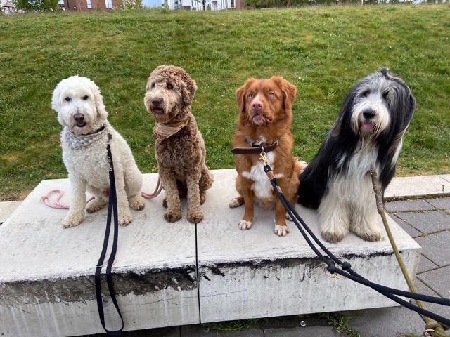 Fit in den Herbst für Hund und Herrchen: Matthias nimmt mit Piet am Strong Dog Wild & Dirty North teil, einem Hindernislauf, der in Luhmühlen stattfindet. Piets beste Hundekumpel aus dem Viertel – Bennett, Frieda, Arik und Rooney (ja, der moderne Hund von heute hat SELBSTVERSTÄNDLICH einen Instagram-Account 😉 – sind auch dabei (auf dem Foto von links nach rechts). Der 6 Pfoten Valentine Run im Februar war ja quasi nur zum Üben….