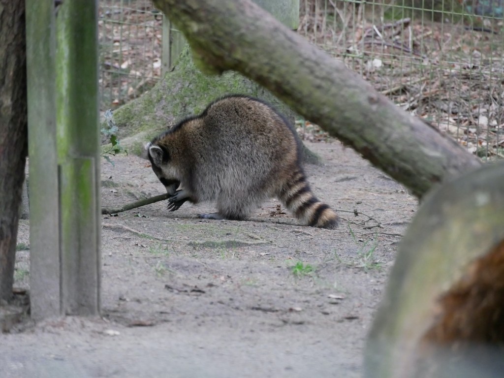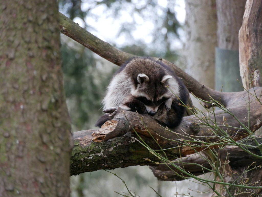 Für den Spaziergang um das Freigehege herum, vorbei an Bären und Elchen, brauchst Du festes Schuhwerk, und mit Rollstuhl oder Kinderwagen solltest Du hier sehr vorsichtig sein, denn es gibt ein wirklich starkes Gefälle. Es ist aber ein wunderschöner Waldweg, bei dem man kaum jemanden trifft. Um die Waschbären vor die Kamera zu bekommen, braucht es etwas Geduld.