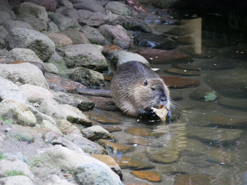 Den Rest des Parks haben wir – nach einer zweiten Ess- und Trinkpause für die Kinder – recht zügig abgearbeitet, denn 3 Stunden sind schnell vergangen. Am Streichelzoo war der Andrang groß. Wenn Deine Kinder noch nie da waren, lohnt sich das Warten sicher, aber für die „großen“ Zwillinge war das nichts Neues mehr, da sie schon häufiger im Wildpark waren. Besonders spannend hingegen fanden sie die Nutrias (Nr. 54) und die Störche (Nr. 60).