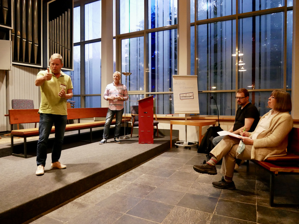 Die ursprünglich geplante Location können wir zwar aufgrund der Coronaregeln derzeit nicht nutzen, aber als Übergangslösung fanden wir zunächst einmal Unterschlupf in der Paul-Gerhardt-Kirche. Dort haben wir auf jeden Fall Platz – und wirklich eine ganz besondere Atmosphäre! Das erste Präsenztreffen war ein voller Erfolg! Ein unglaublich tolles Gefühl, wenn Menschen, die man bereits mehrere Male online getroffen hat, plötzlich „live“ vor einem stehen! Die Zusammenarbeit mit der Paul-Gerhardt-Gemeinde, vor allem Diakonin Antje Stoffregen, war konstruktiv und unbürokratisch.