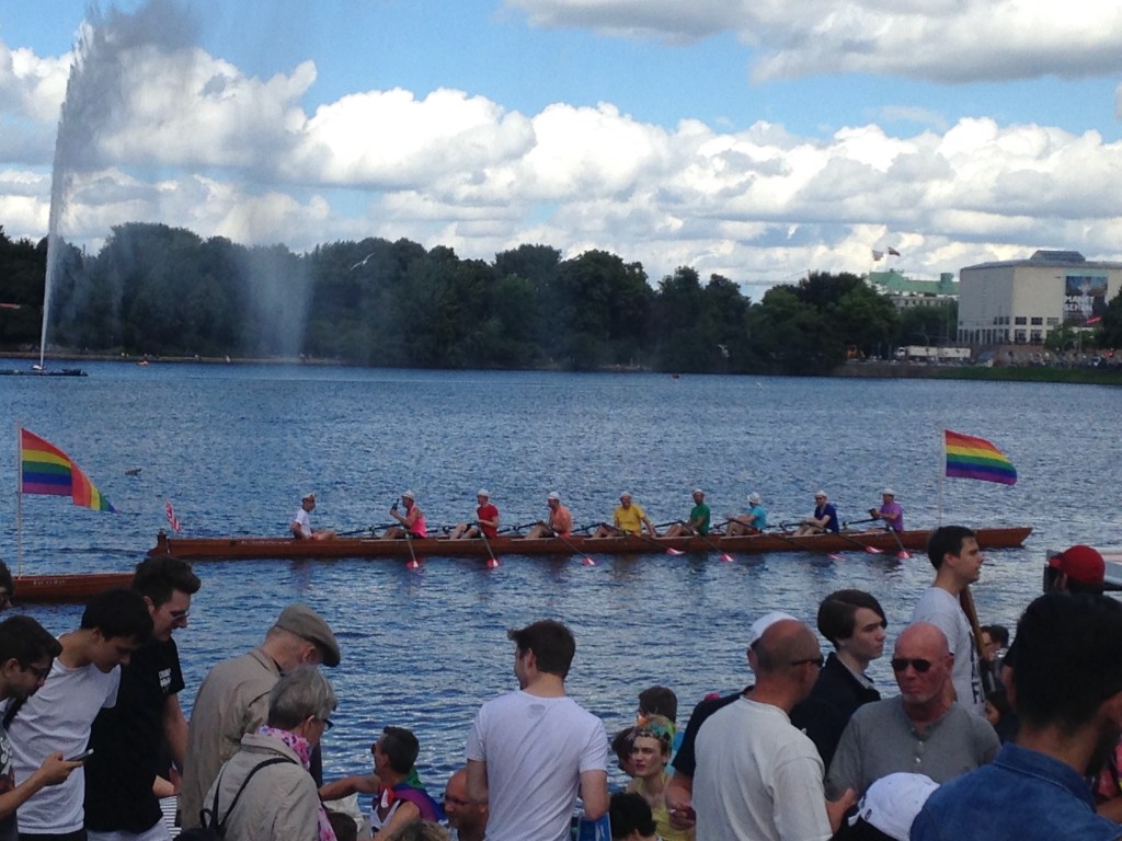 Komplett holte mich die Realität ein, als ich 2008 nach Hamburg zog und in einen Musical-Chor eintrat. So viele attraktive und gut gekleidete Männer in meinem Alter – und ich war gerade mal wieder frisch getrennt. Bis mich unsere Vorsitzende zur Seite nahm, auf einige der Herren zeigte und sagte: „Der, der, der… und der: vergiss es! Und übrigens: darf ich Dir meine Frau vorstellen? Und das ist unser Sohn.“ Darauf brauchte ich erstmal einen Prosecco. Ich war angekommen in der Großstadt. Nur kurze Zeit später besuchte ich mit dem frisch wiedervereinten Partner und heutigen Gatten meinen ersten CSD in Hamburg. Es waren von da an die besten Partys, auf denen ich jemals war: einfach nur Spaß haben und Feiern, kein Stress, kein Rumgezicke, Toleranz pur – jeder wird akzeptiert, wie er/sie/es ist. Ich bin heute unendlich dankbar, dass ich diese Erfahrung machen durfte und auch mein Mann so herrlich entspannt damit umgeht – denn er wurde von meinen schwulen Chorkollegen teilweise ganz schön angegraben 😉