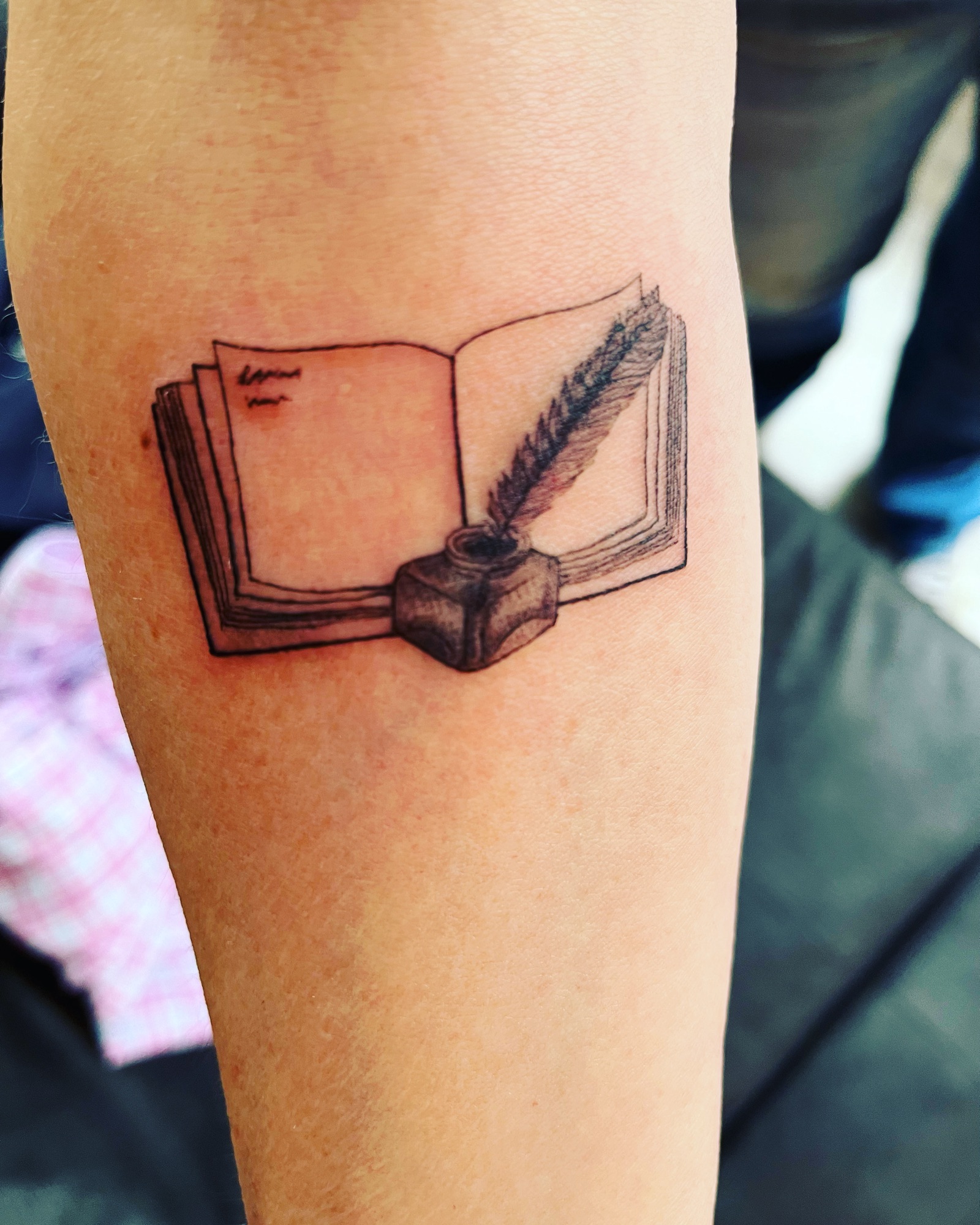 Das Tattoo (made by Freyja Ophelia) sollte mich immer daran erinnern – und von Julia bekam ich den entscheidenden Anstoß, endlich mit meinem Buch anzufangen!