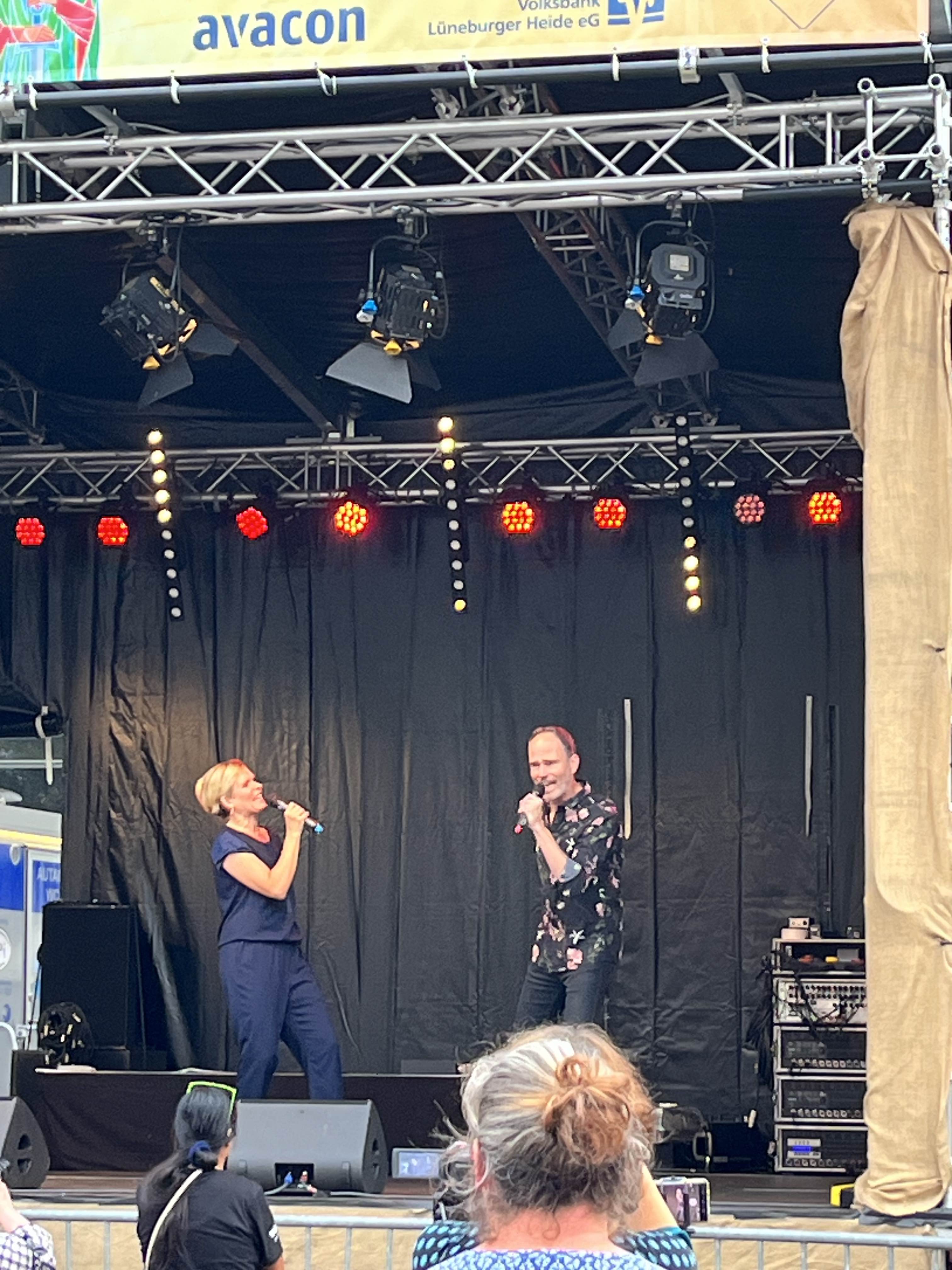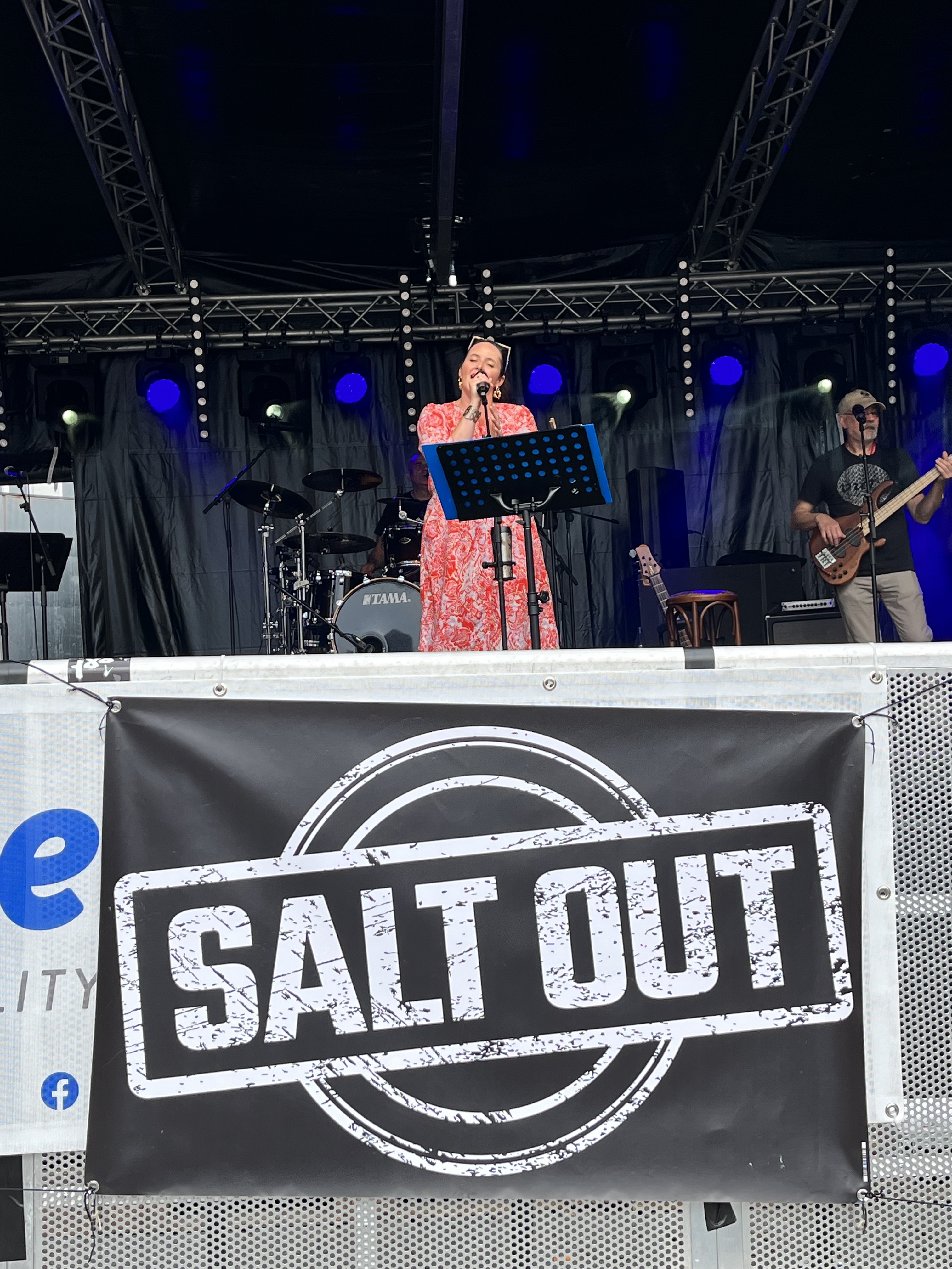 Impressionen von „Lüneburg feiert“: links und Mitte die Band SALT OUT mit Frontsängerin Gillian, rechts Stefan Gwildis.