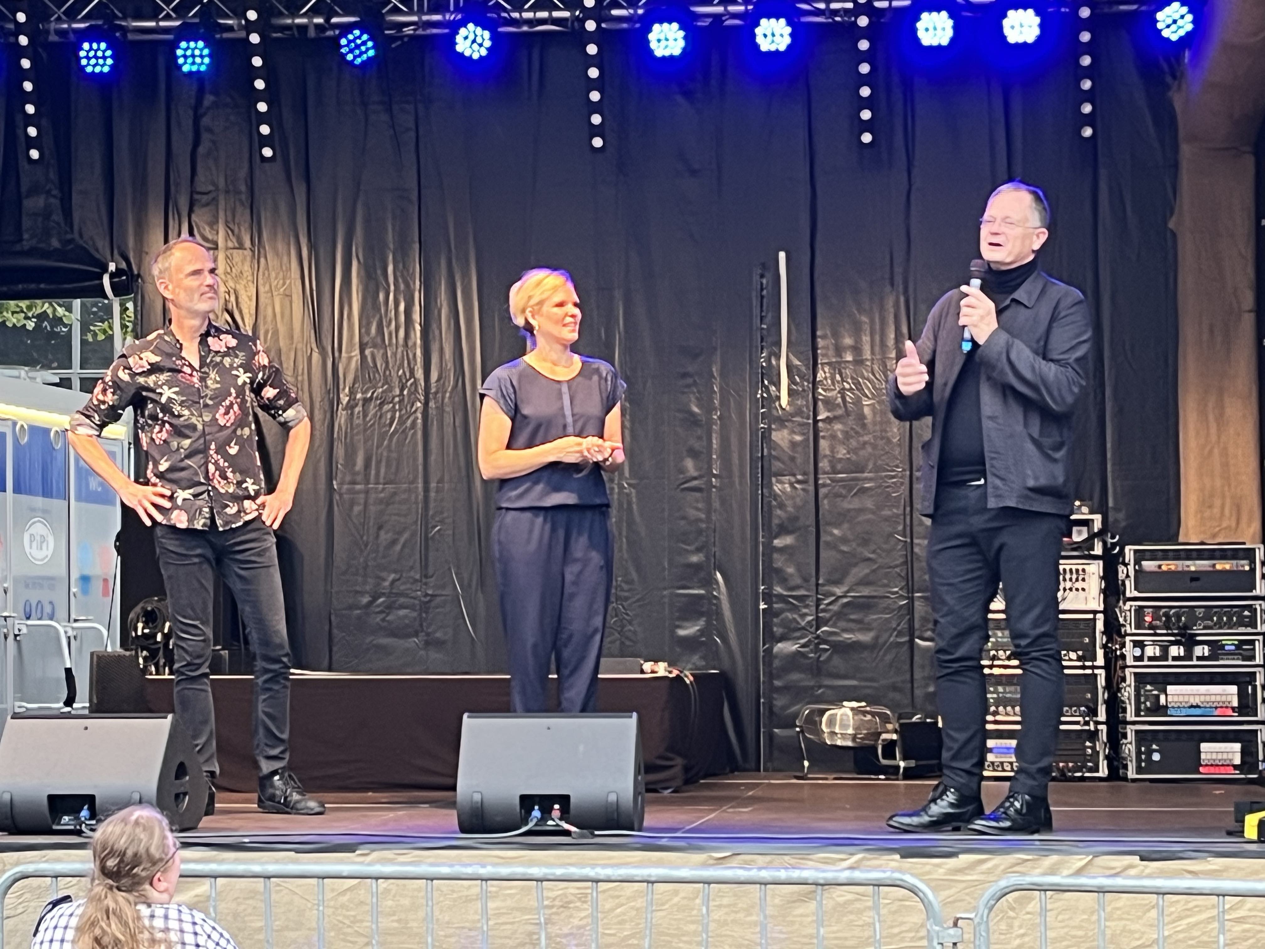 Sülfmeistertage XXL: Auftakt am Freitag mit Irish Folk und Musical-Melodien am Brückentag vor dem 3. Oktober mit Thomas Borchert und Navina Heyne ((rechts daneben Theater-Chefdramaturg Friedrich von Mansberg)