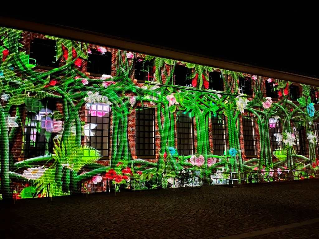 Im Rahmen der Ausstellung wurden jeden Abend bewegte Bilder auf die Front der KulturBäckerei projiziert.