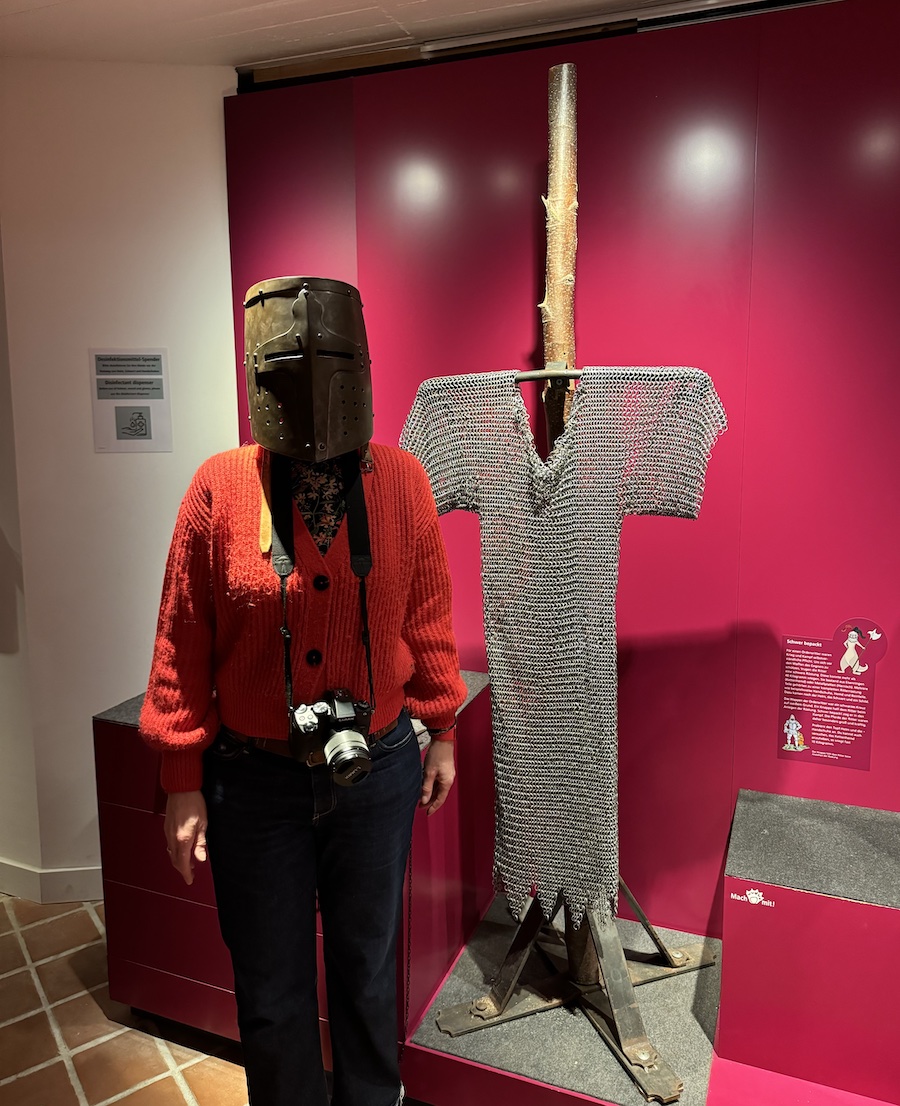 Zu Beginn gibt es einen kleinen Ausflug in die Namensgeschichte der Preußen, zu den Prußen, einem baltischen Volksstamm, dessen Siedlungsgebiet im 13. Jahrhundert an der Ostsee lag. Schon landen wir in der Zeit des Deutschen Ordens (1231 – 1525). Hier darf ich am eigenen Leibe erfahren, wie schwer eine Ritterrüstung gewesen sein muss – und dabei trage ich nur den Helm, vom Kettenhemd ganz zu schweigen. Wir machen einen kleinen Abstecher in die Natur Ostpreußens. Die Landschaft ist flach und geprägt von Wäldern, Seen und Flüssen. Ein kurzes Bild konnten wir uns 2018 davon machen, als wir auf unserer Reise mit dem Wohnmobil durch Polen bis an den Rand der Region Masuren kamen. Zahlreiche Tierarten fühlten sich in dem damals relativ dünn besiedelten Gebiet wohl, so beispielsweise Elche und Wölfe. Bis heute findet man viele Störche. Die Schaukästen in diesem Bereich des Museums sind besonders plastisch und naturgetreu gestaltet, das ausgestopfte Wisent ist beeindruckend, das Röhren des Elches hingegen vergleichsweise zart, da ist mein Beagle lauter, wenn eine läufige Hündin in der Nähe ist….