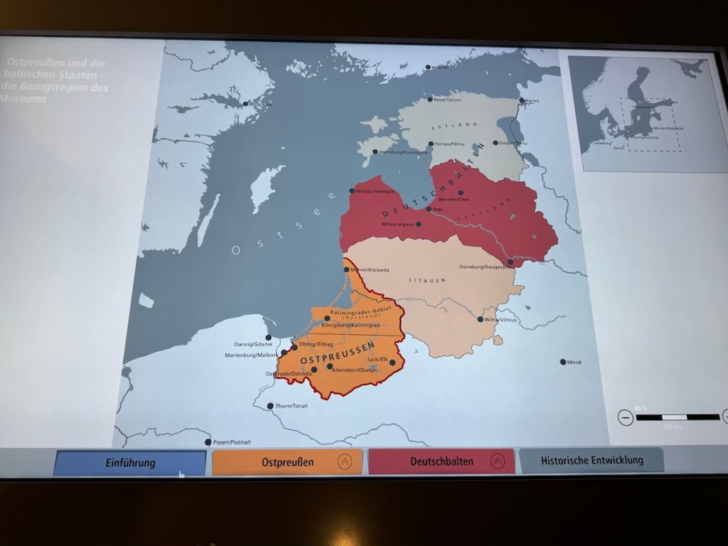 Meine ersten drei Fragen beantwortet er bereits im Eingangsbereich, als wir einen Blick auf die interaktive Landkarte werfen: Warum ist Ostpreußen so wichtig, dass es ein eigenes Museum verdient hat? Warum steht dieses Museum ausgerechnet in Lüneburg? Und warum sollten meine Leserinnen und Leser dieses Museum unbedingt besuchen?