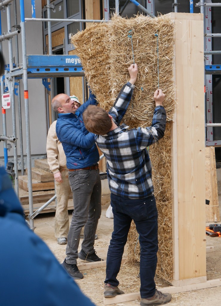 Geplant war ein weiterer Artikel zum Wohnprojekt „Querbeet“, das damals noch im Bau war und mittlerweile fertig und bewohnt ist (Bilder unten vom Strohbautag im Mai 2023). Zufall oder nicht – im Januar lernte ich eine Bewohnerin des Projektes kennen, mit der ich mich anfreundete. Auch mit der Ansprechpartnerin für PR und Marketing habe ich bereits seit einiger Zeit Kontakt. Seitdem steht auf meiner To-do-Liste, den Chefredakteur des Baubiologie-Magazins noch einmal zu kontaktieren. Getan habe ich es bis heute nicht. Warum nicht? Weil ich einfach zu viele andere Dinge um die Ohren habe. Und damit zurück zu der oben erwähnten Lesung.