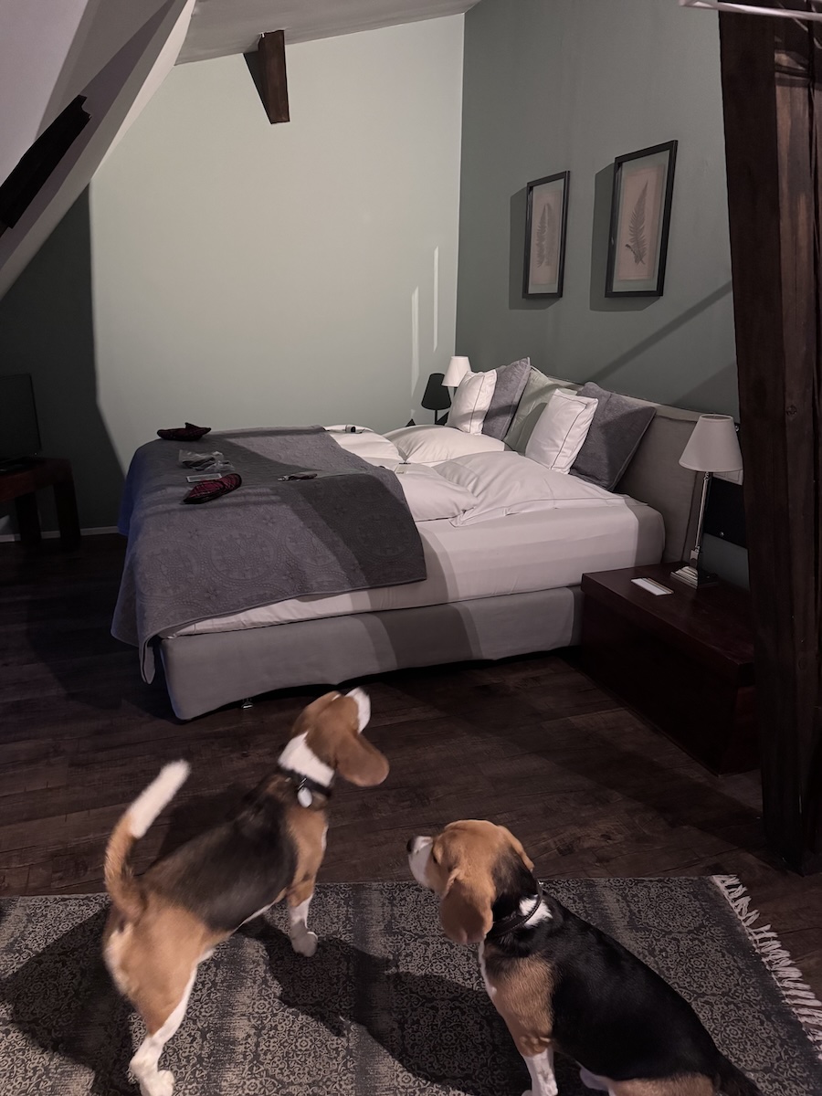 Wir beschliessen das Jahr auf Gut Thansen mit einem böllerfreien Silvester, das dort extra (auch) für Menschen mit Hunden angeboten wird. Eine gute Entscheidung, denn wir genießen ein gemütliches Zimmer und gutes Essen und in der Umgebung kann man herrlich spazierengehen.