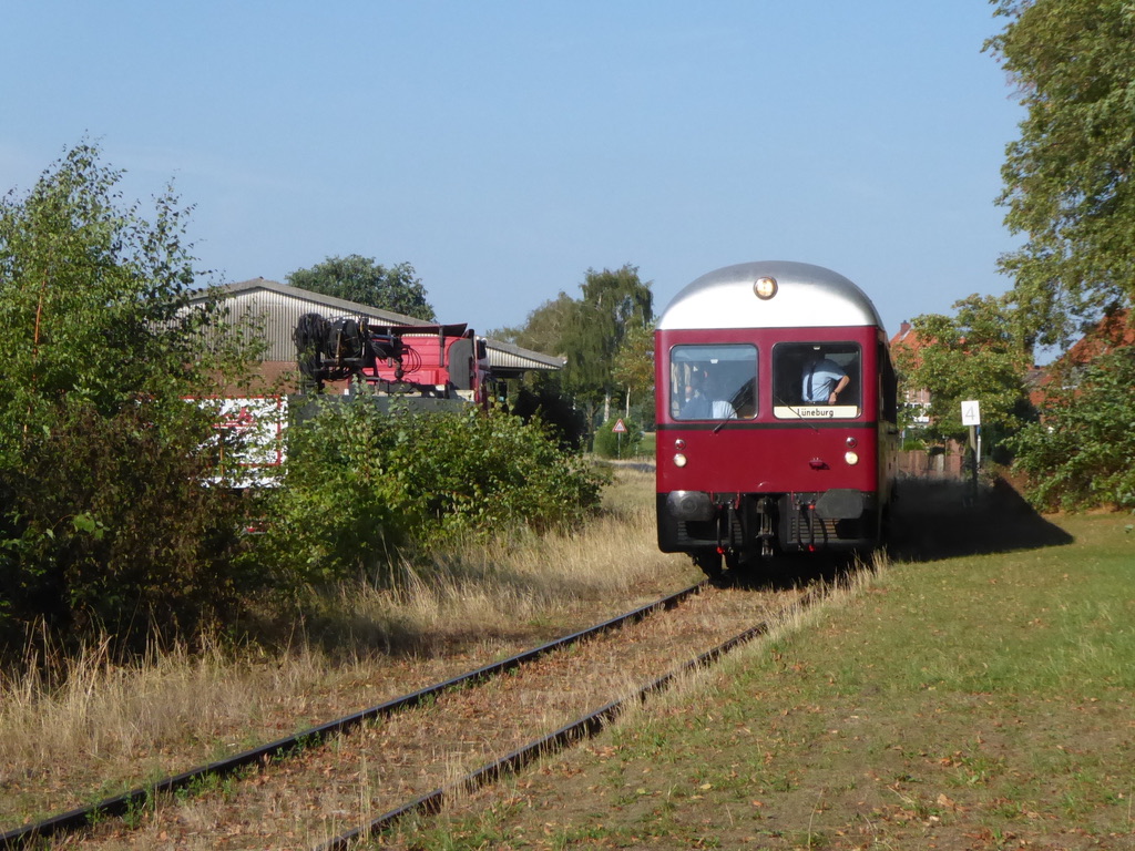 Mit einem grellen Pfeifton verlässt der dunkelrote Triebwagen, Baujahr 1955, um 12.15 Uhr den Bahnhof Lüneburg auf Gleis 4. In dem angehängten dunkelgrünen Waggon, Baujahr 1929, ist ein Abteil für die SPD reserviert. Auch Oberbürgermeister Ulrich Mädge (Baujahr 1950) reist an diesem Sonntag mit. Unsere Fahrräder sind im Güterwagen verstaut und wir haben Plätze im … Weiterlesen Nicht nur für große Jungs: Mit der Kleinbahn von Lüneburg nach Bleckede